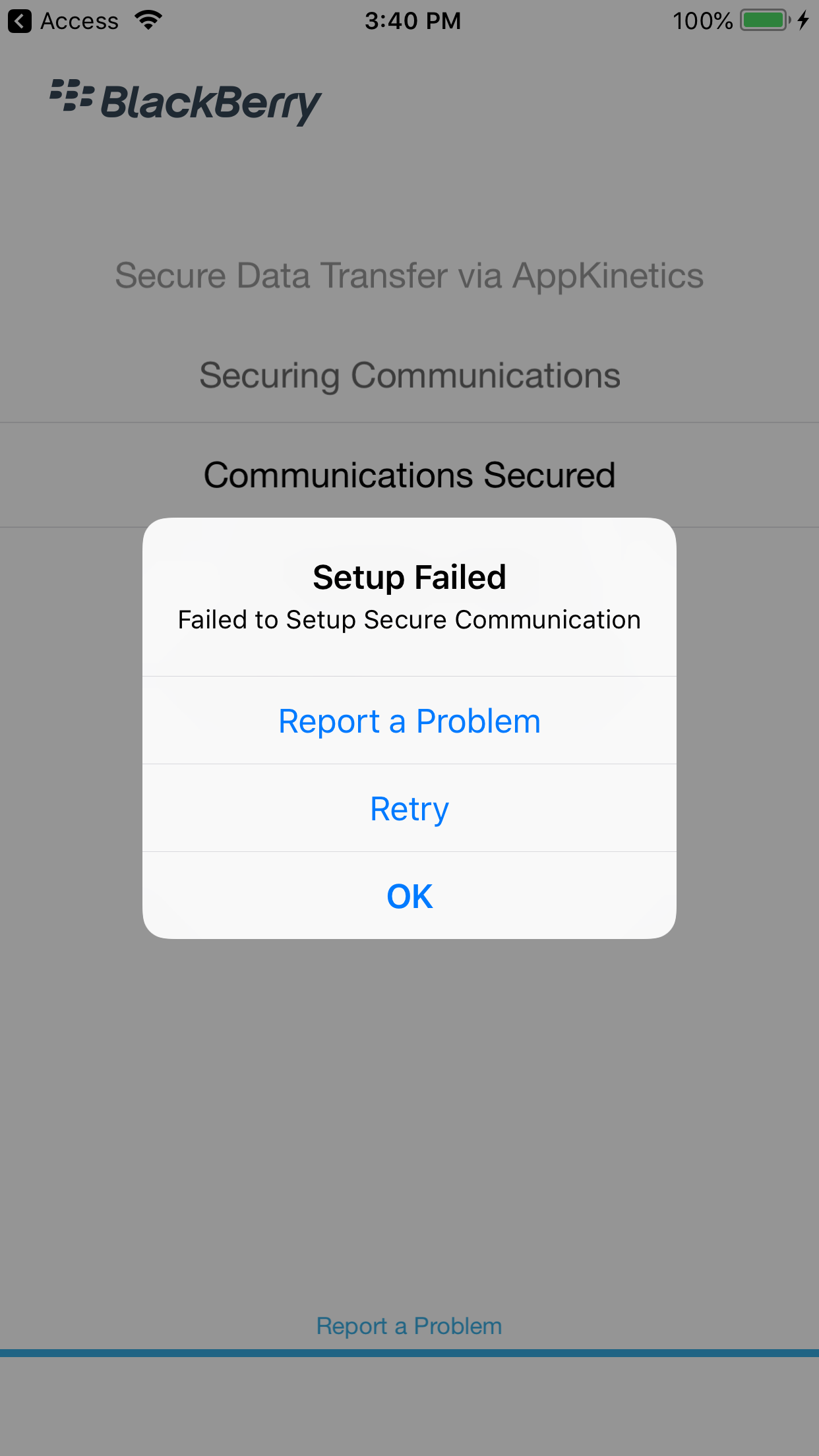 I am trying to test good / blackberry dynamics native app and getting secure connection error when try to login with valid credentials.
