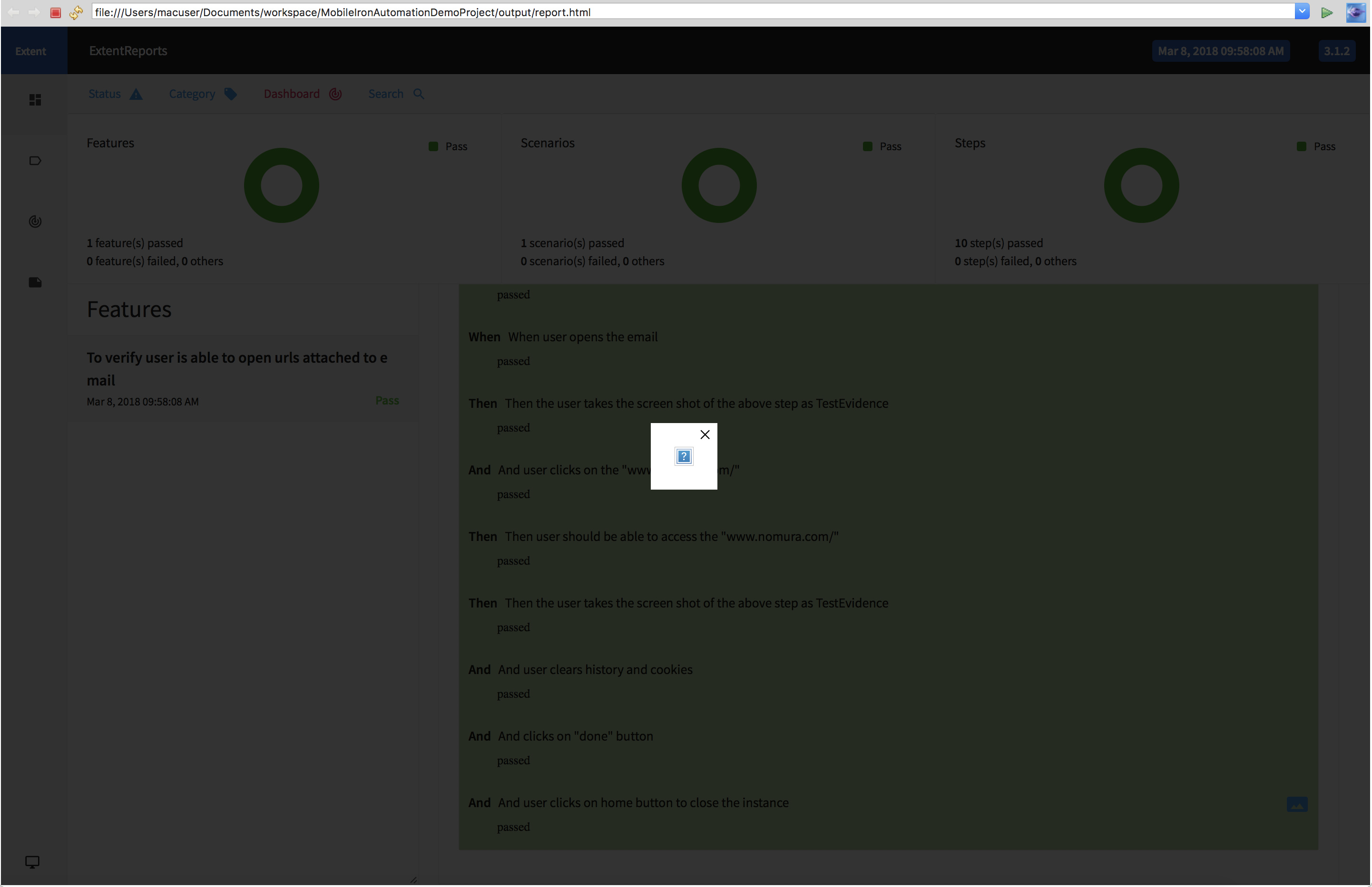 But when report is generated I am not able to open the screenshot, the images displayed is broken