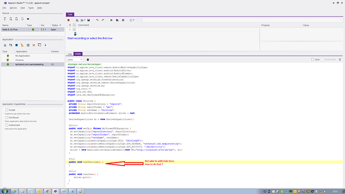 Appium Studio, but unfortunately the code section is non editable, How can I edit the code for automated testing ?Hi