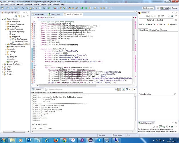 I Record the iOS app using appium studio, imported the code in to eclipse and ran the test. Test is not getting executed on iPhone device. Please refer the screen of my eclipse. How make the test run on my device?